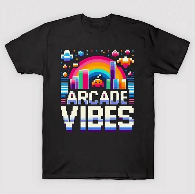 This soft, breathable t-shirt showcases classic arcade game graphics in vivid colors. It's a nostalgic piece for gamers who love vintage vibes.